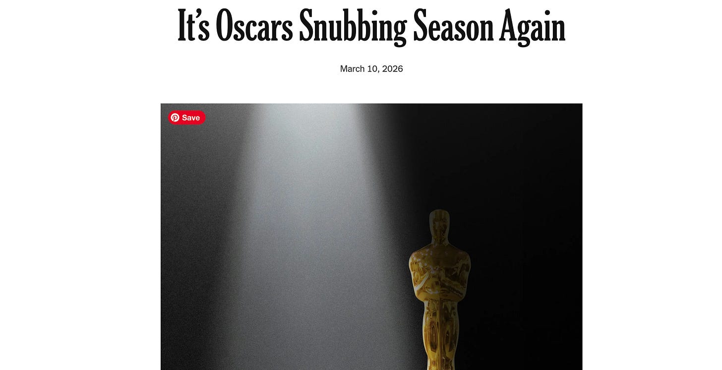 Of course, many of your favorites won’t win. That’s par for the course. Author Sloane Crossley wrote a great essay in the NY Times today about “snubbing season” and the strange fixation we have on who didn’t get nominated. She talks about how in a culture that can’t concentrate, it’s easier to talk about the negative space, and the performative conversation is an extension of fandom. She writes, “[L]et’s enjoy what’s left of this season of anodyne outrage, this inconsequential possessiveness over millionaires whom we do not know.” The snubs are almost as exciting as the wins for us peons in the audience whose careers and financial stability don’t ride on the nominations. What she calls “the emotional parade televised” is a major part of watching the show. It should be an honor just to be nominated, but we all know that’s not true.